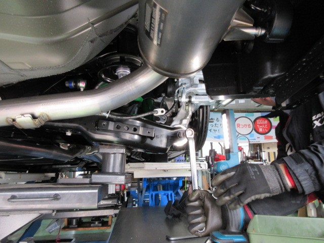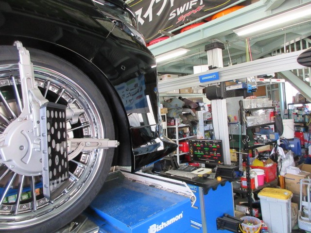 フェンダーもパツパツまで攻めれたので、これでアライメント調整(車検対応ギリギリ)