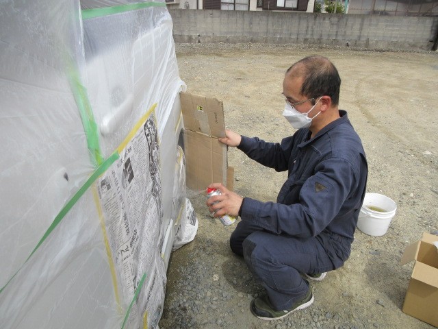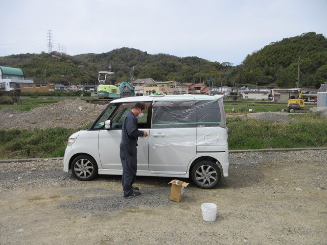 お客様の お願いで安くで塗装だけしてとの事で同じ色のラッカーを買って来て塗装します。