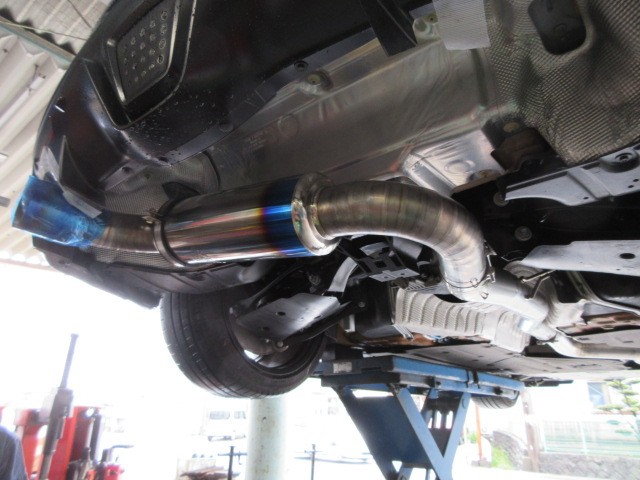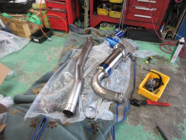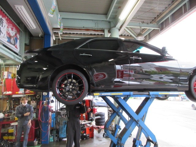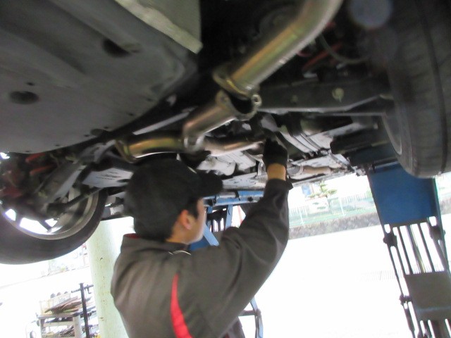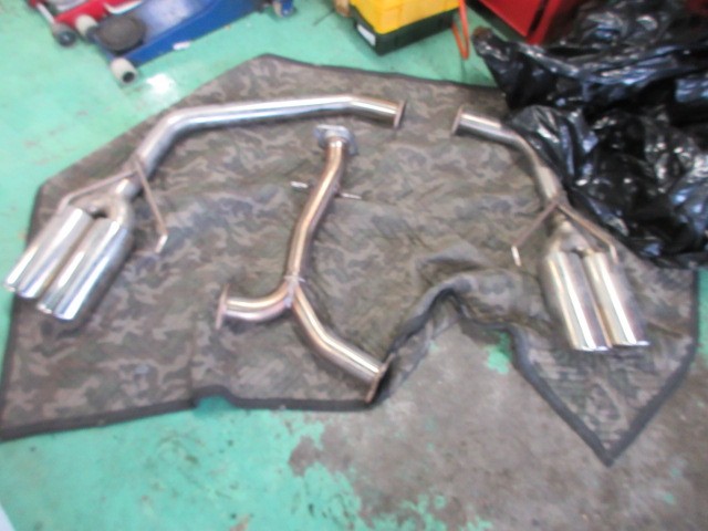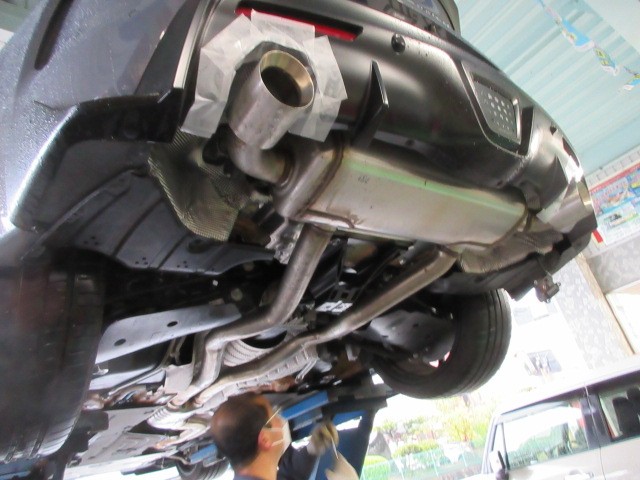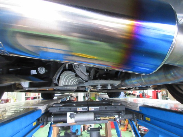 マフラーの日なのでしょうかマークXに少しええ音のするマフラー取り付け作業です。