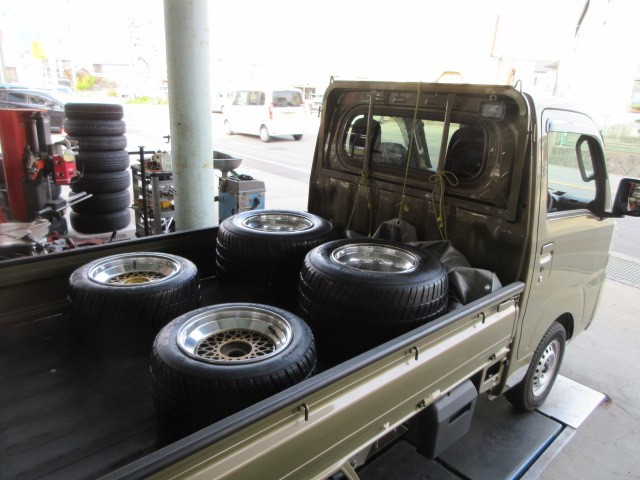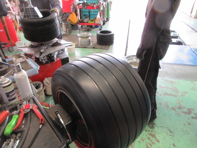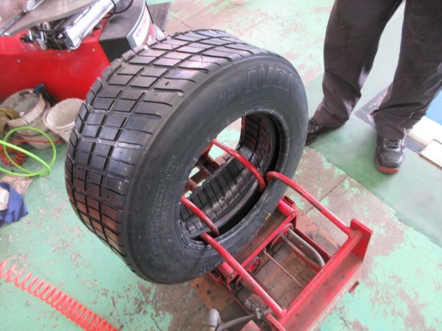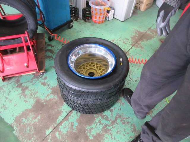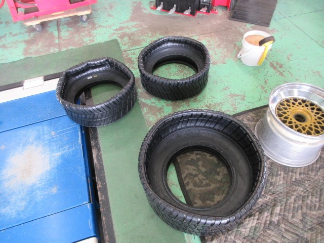 にレインタイヤの組み込みです。ペッチャンコのまま送られてきます。