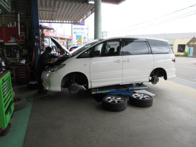 エスティマさんの車検整備です。あまり乗っていないので綺麗ですね。