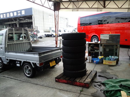 早朝 開店前に和歌山FUSOにお客様の外したタイヤを引き取りにお邪魔しました。