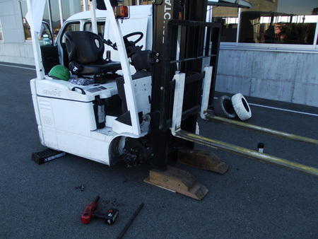 えーと 朝7時からフォークリフトのタイヤ交換