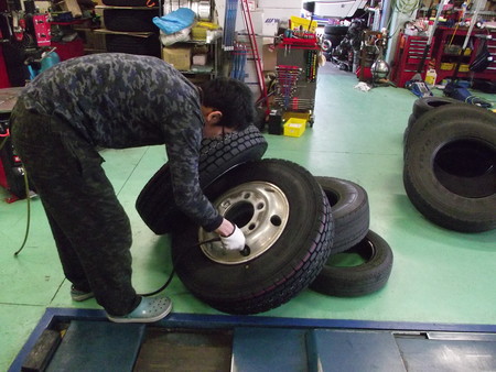 和歌山市内から引き揚げフォークリフトのタイヤ装着完了しました。