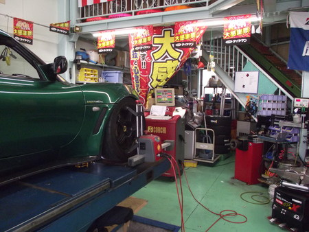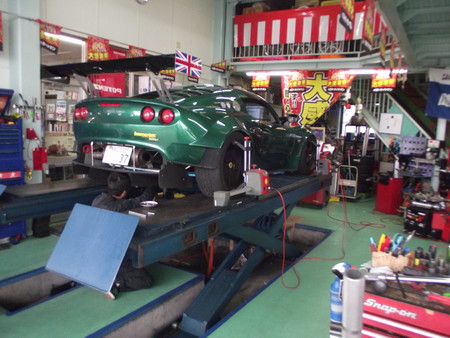 朝一からお客様のデモカーエキシージのアライメント調整 低いので調整しにくい。