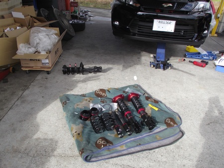 朝一からハリアーにブリッツ車高調組み付ける。