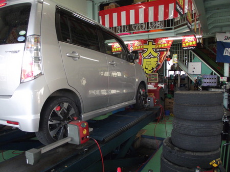 鈑金屋さんからの依頼で、ワゴンRアライメント調整 私が、作業させて頂きました。