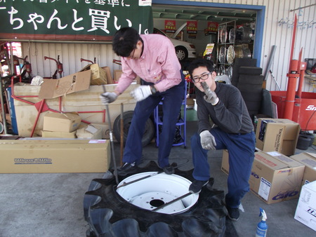 トラクターのタイヤの入れ替え、26インチ チェンジャーに掛からない最悪