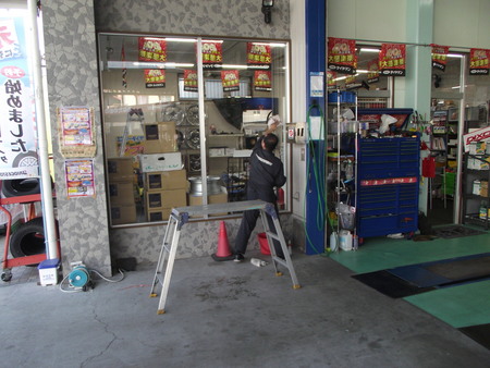 工場長が、ガラス磨き、ぼくゴミ捨て。