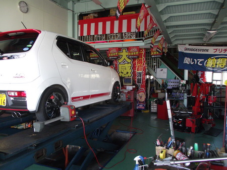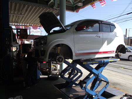 イベントの予約のお客様のアルトRSにKYBローファーSを取り付けアライメントです。