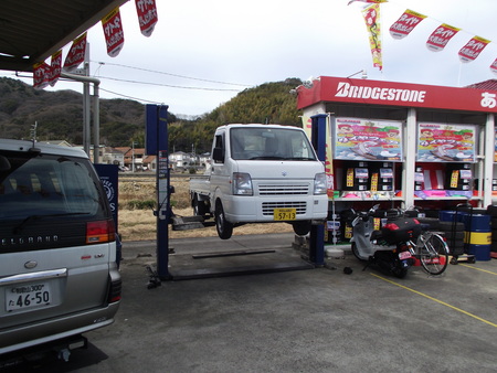 駐車場に二柱リフト設置完了しました。