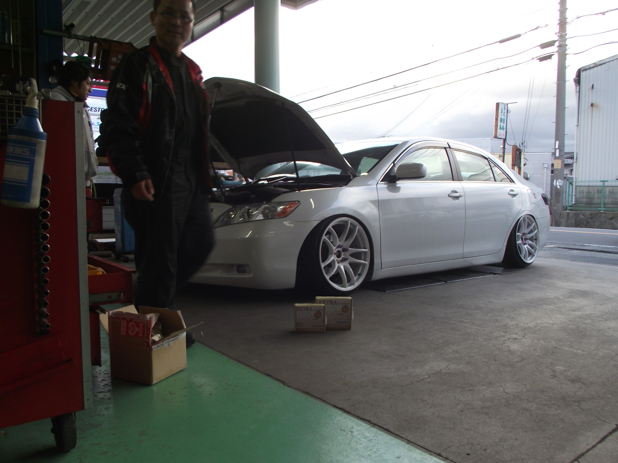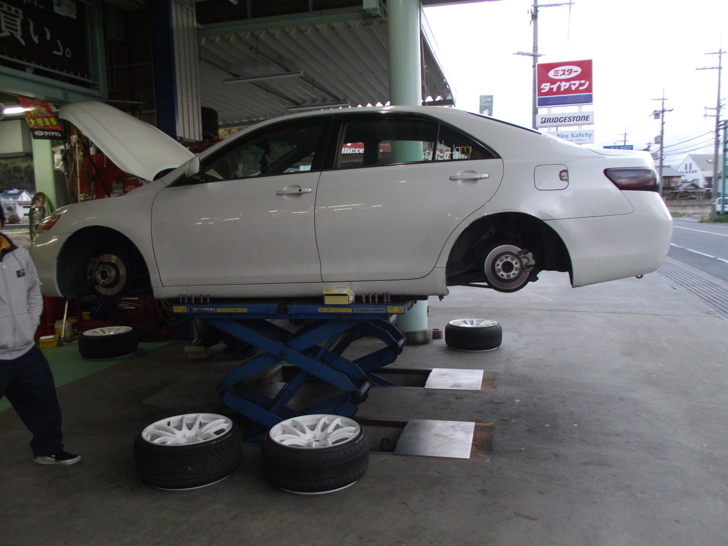 超低空のカムリにディクセルのパット取り付け作業。
