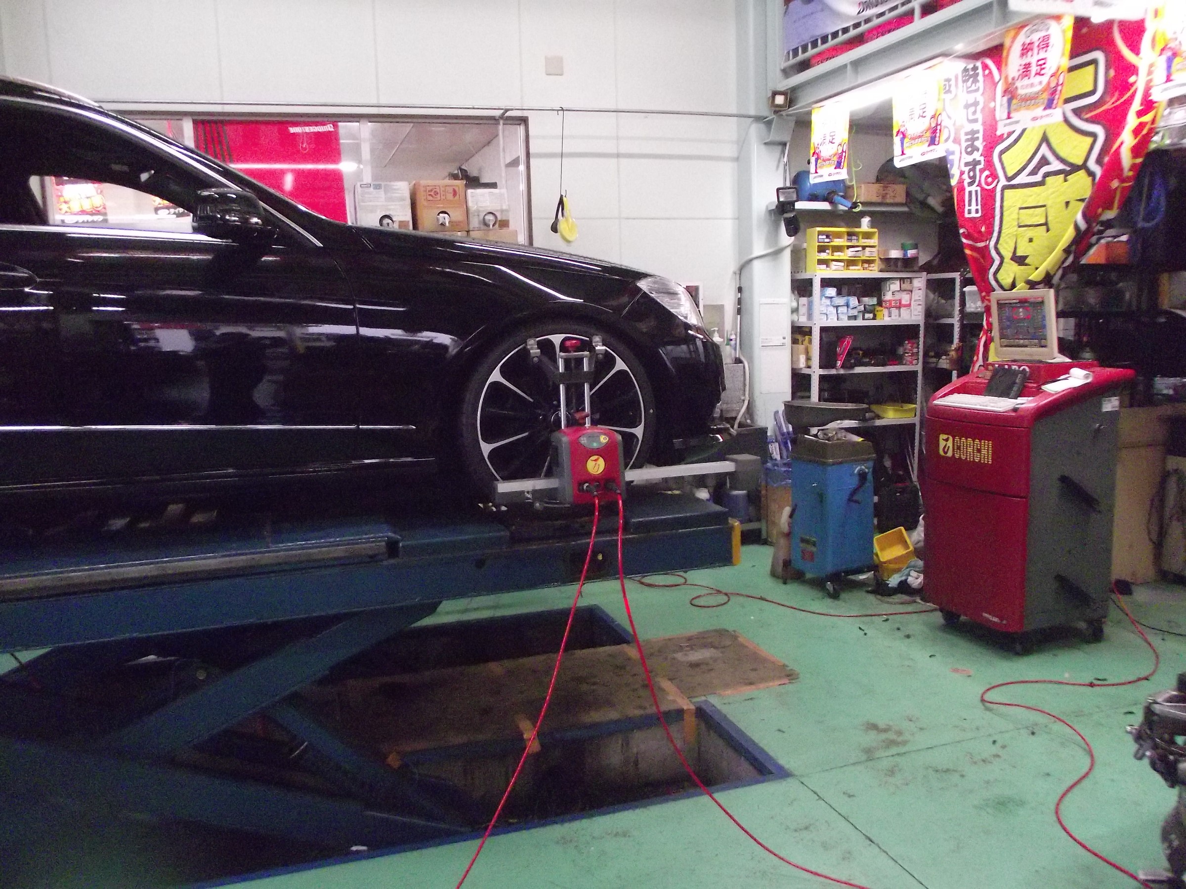 なんてベンツか、知らんけど20インチタイヤ交換&アライメントこれが、面倒な作業です。