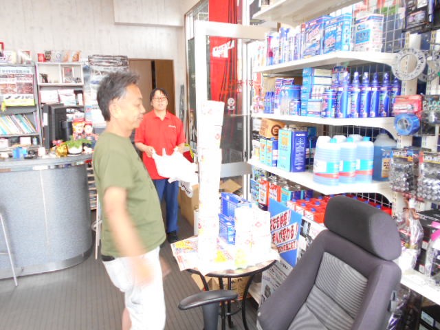最後に、お買い上げのお客様にトイレットペーパー積み上げチャレンジに参加してもらいました。