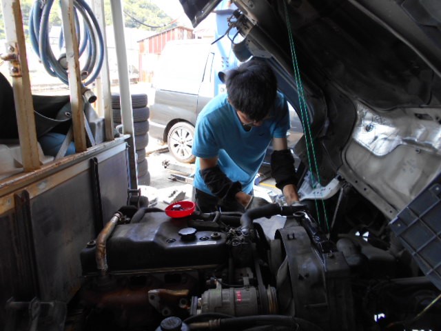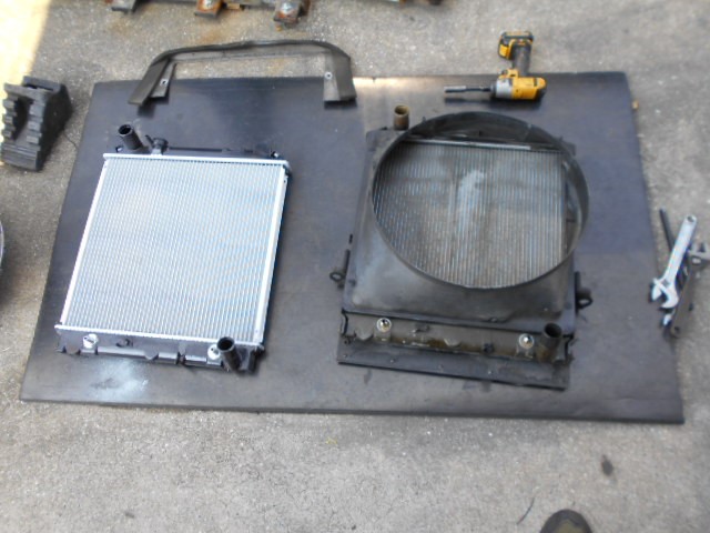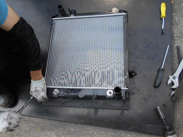 部品待ち作業が、立て込んでいたので、次男に頼んで手伝ってもらい、エルフのラジエーター交換です。