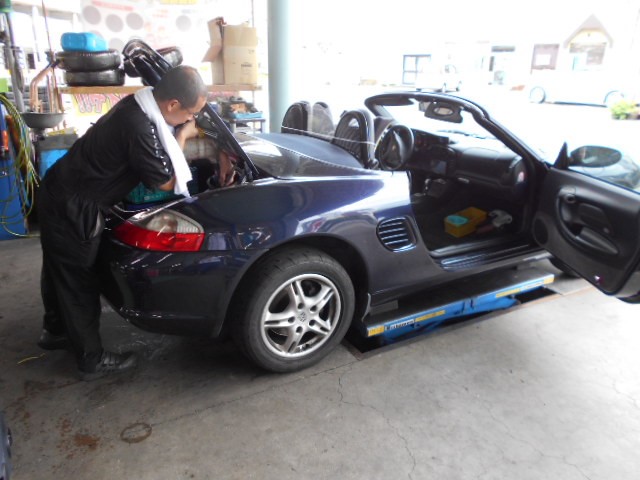 昨日 夜中に運ばれてきたボクスターの修理です。