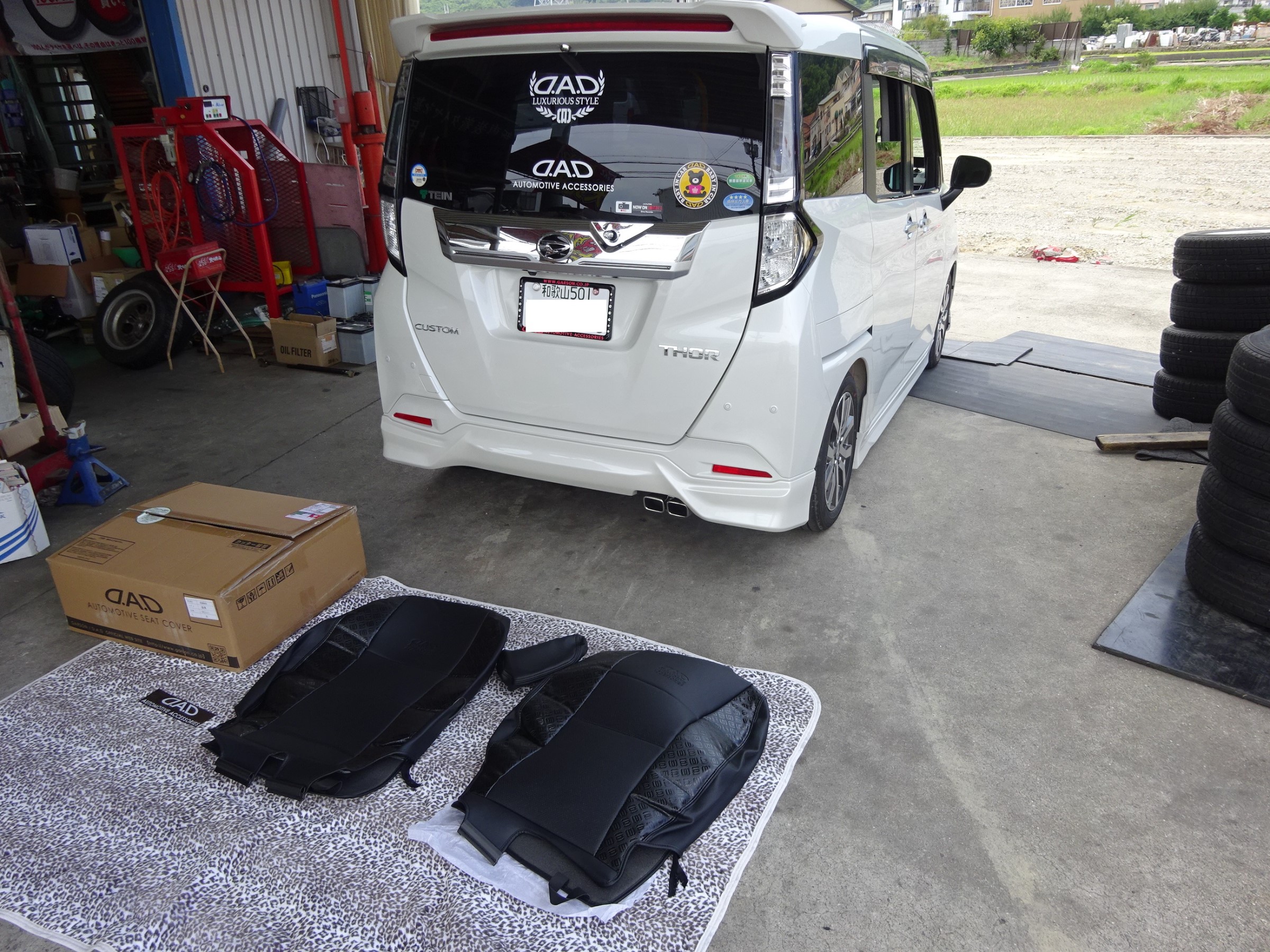 先日納車した。トールに、やっと入荷した。ギャルソンのシートカバー取り付けです。