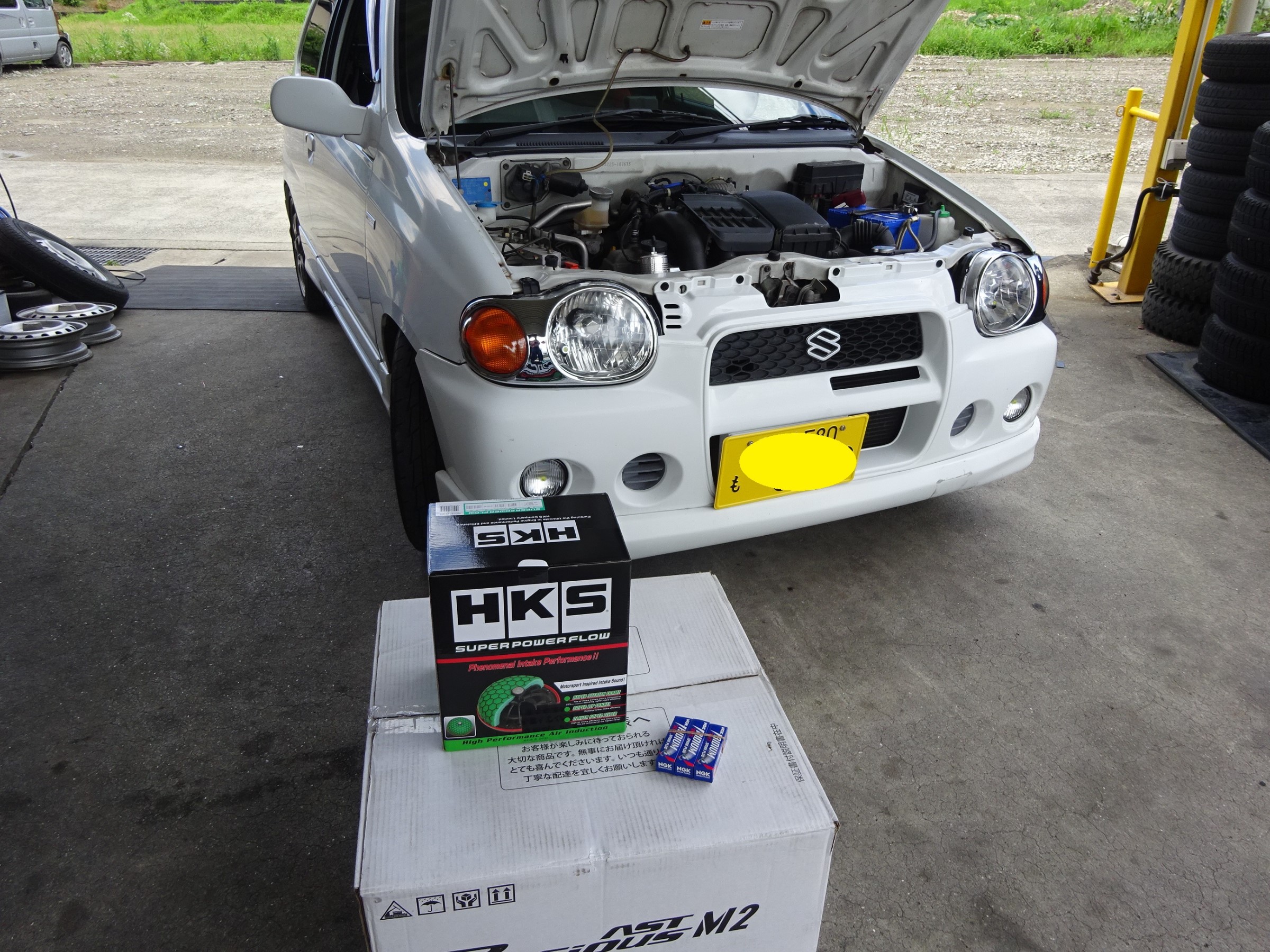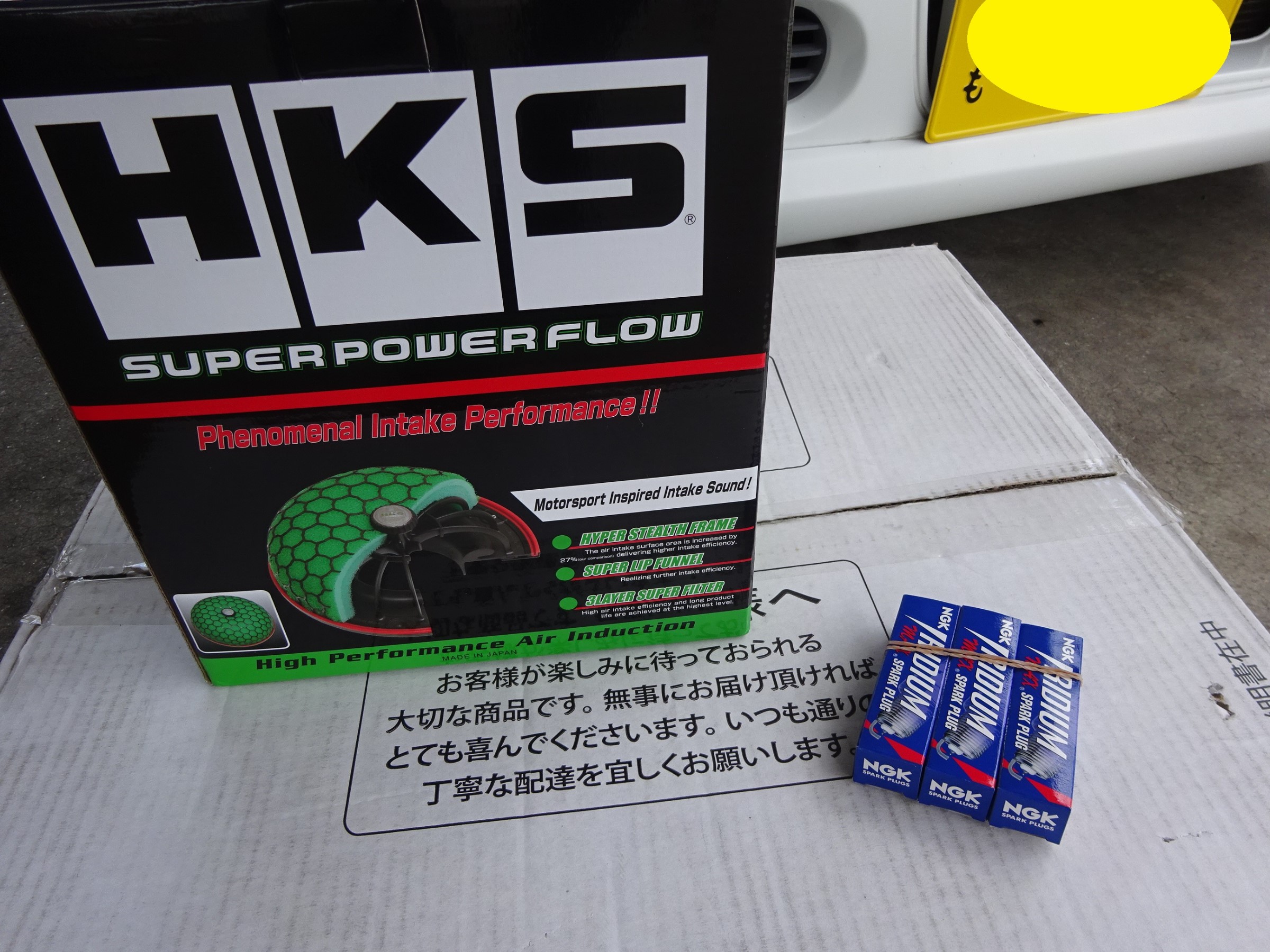 それはさて置き、本日のメニューは、HKS のスーパーパワーフロー&NGKイリジュームプラグの交換です。