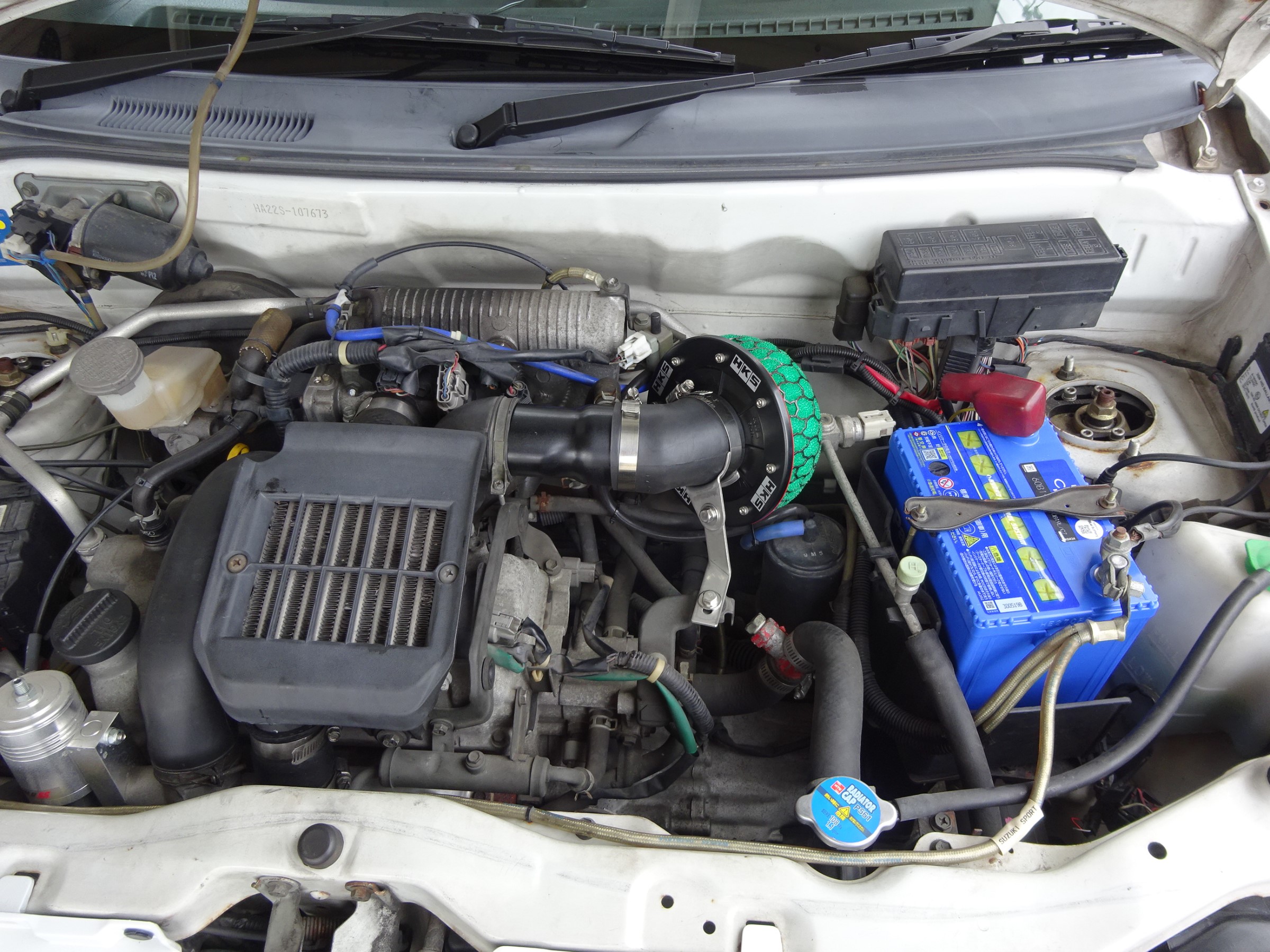 この個体は、HA22Sアルトワークスの初期型なんとVVT可変バルブタイミング付きのスロットルバイワイヤーになった、初めてのモデルです。