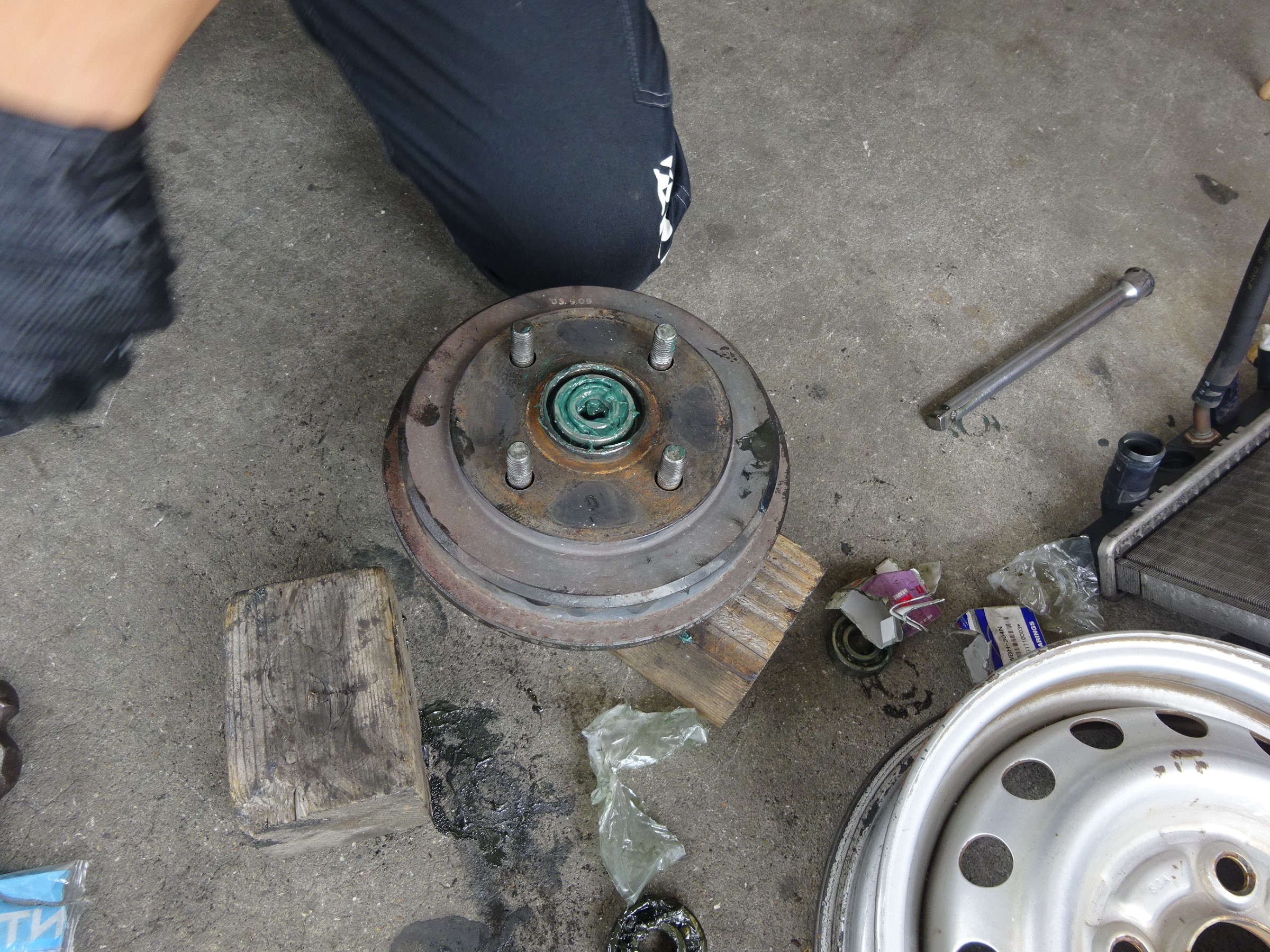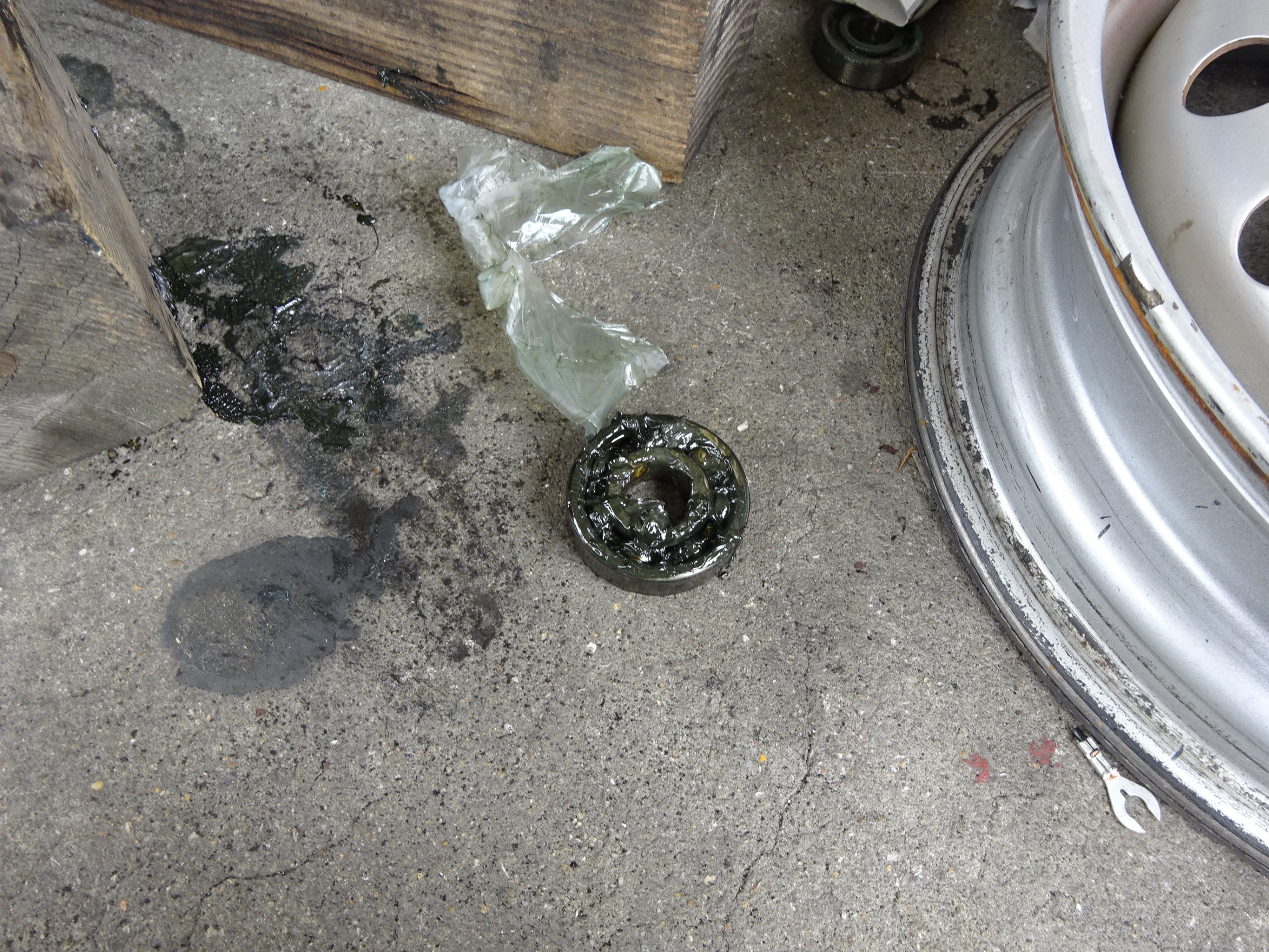 リアのハブベアリングの交換作業ですが、ハイグリップタイヤを履くと、BRGが小さいので、寿命が短いですね。