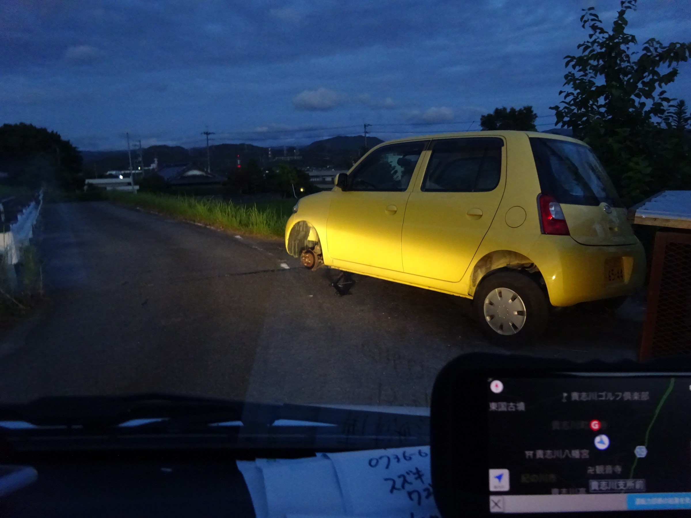 エッセの客様 道わからん近所の畑のあぜ道で、パンク急いで救出に行きました。