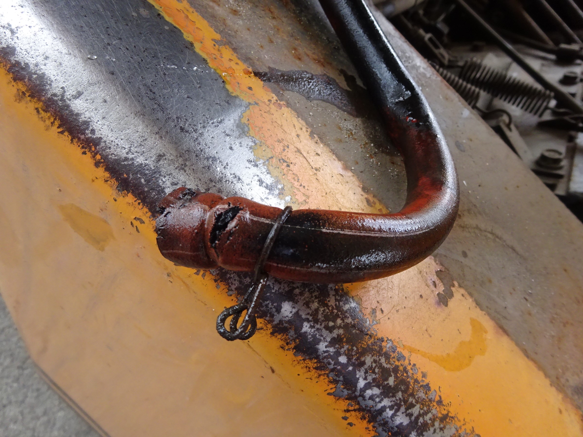 老朽化した。ブレーキフルードタンクからのホース割れ