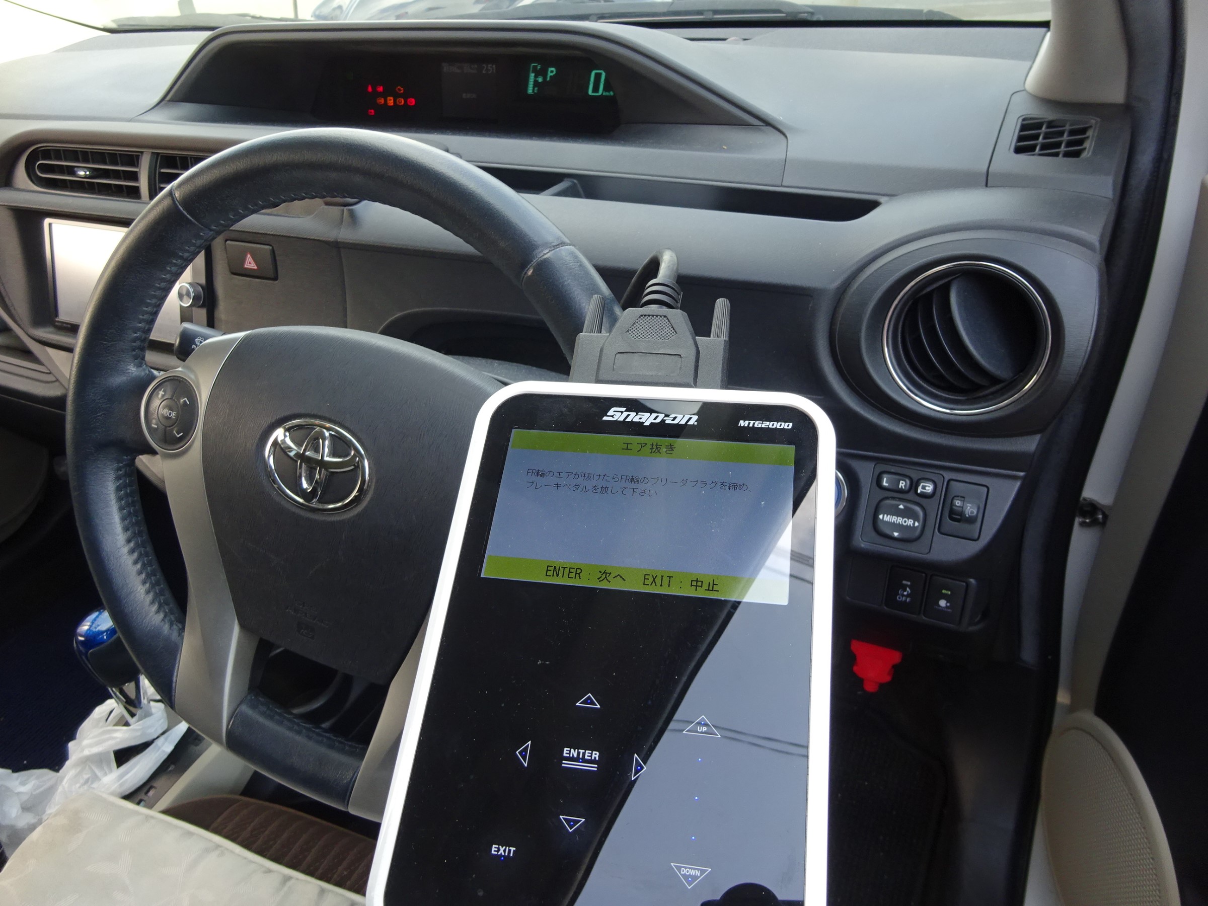 この車 厄介で、ブレーキフルード交換には、OBDスキャンツールにての作業になります。