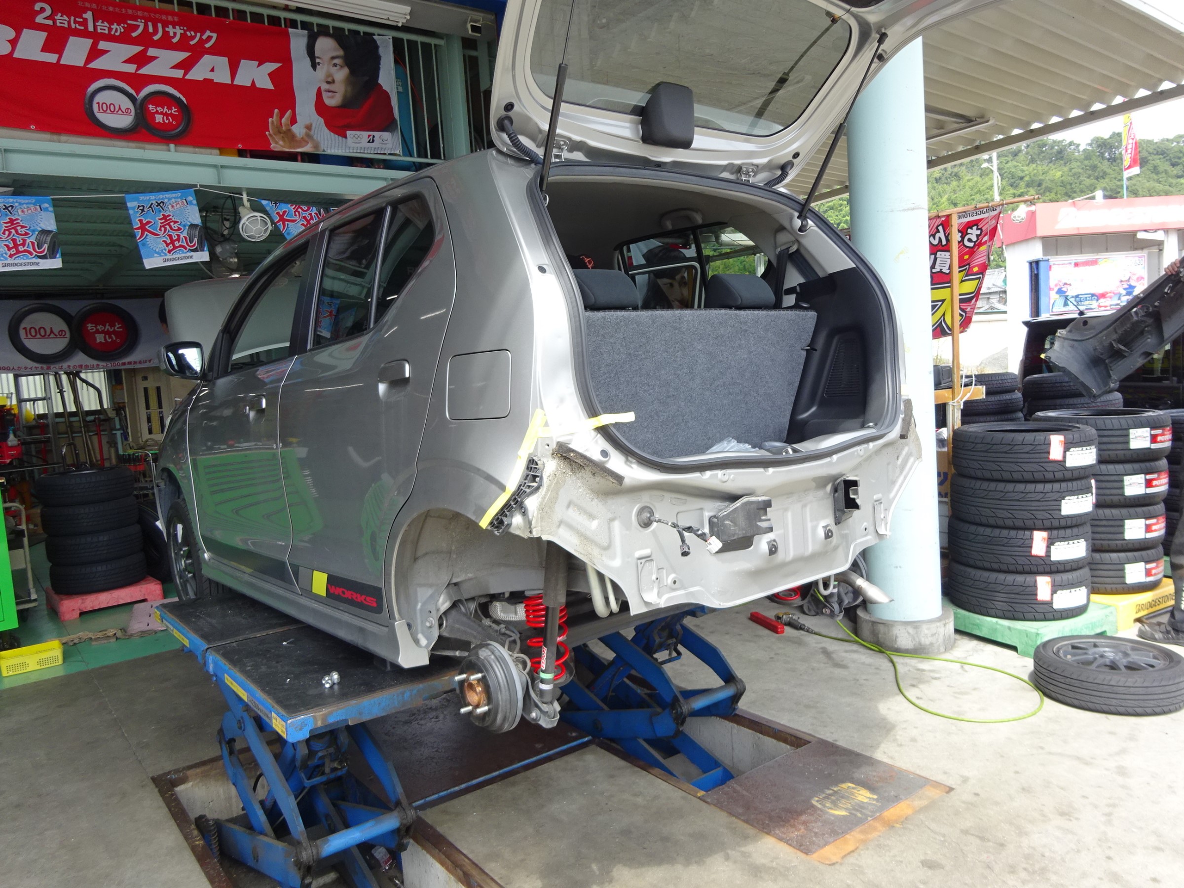 アルトワークスのお客様の依頼で、持ち込みの部品の取り付け作業です。