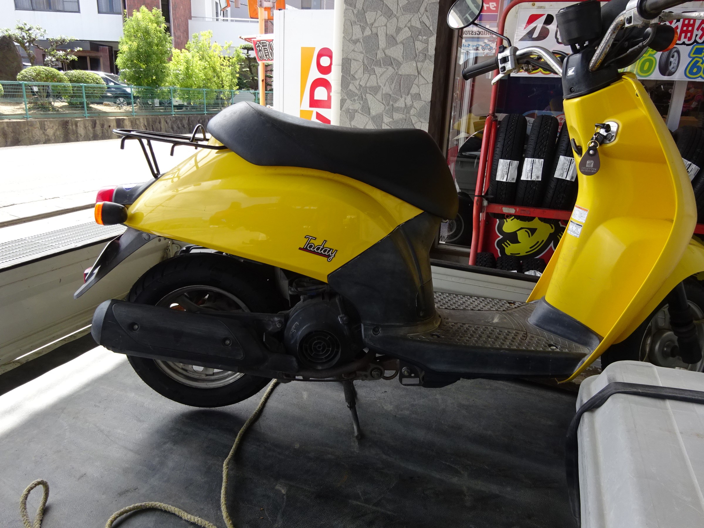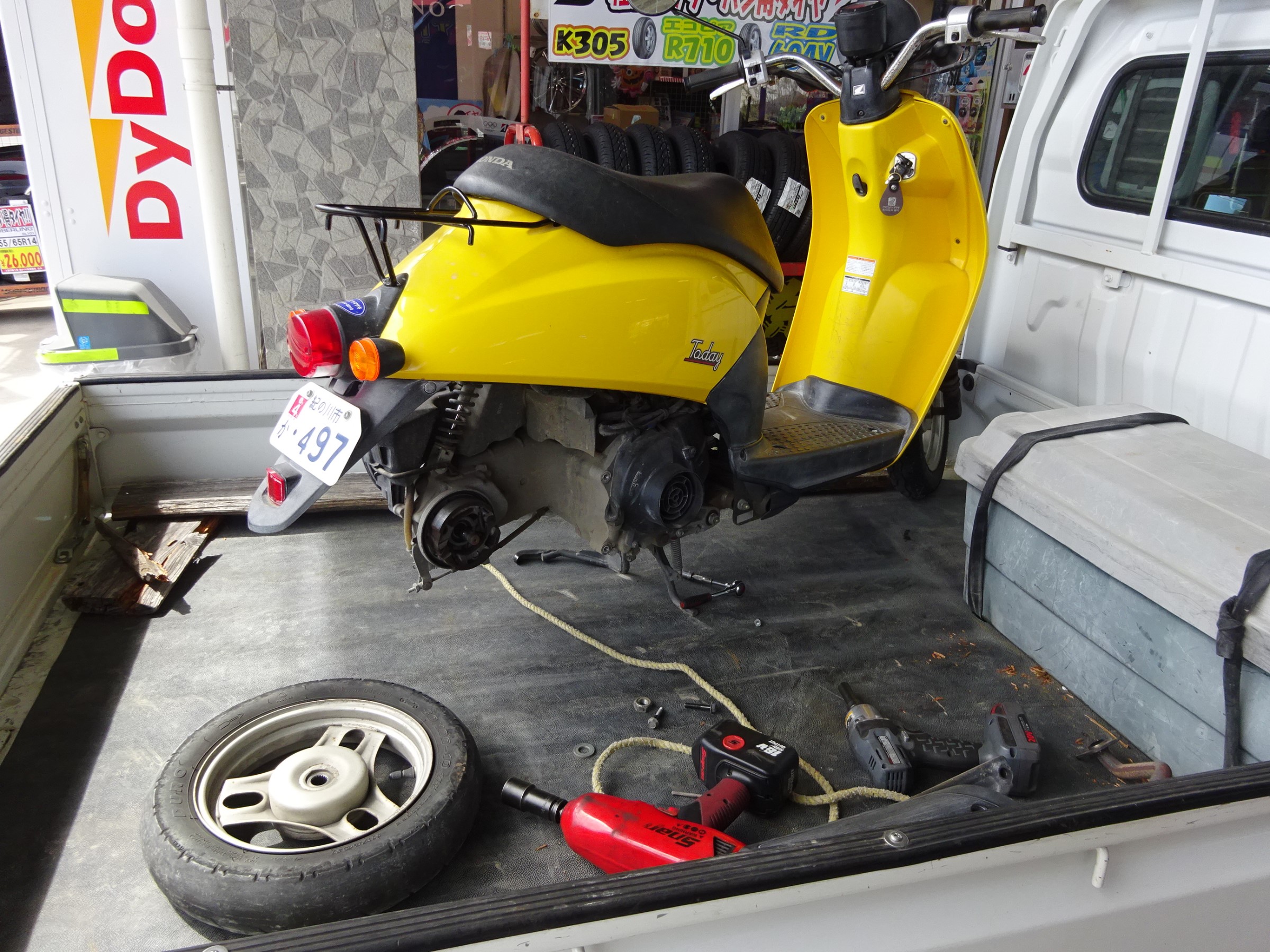 近所のおじさんが、スクーター積んできてタイヤ交換 下ろさずに。