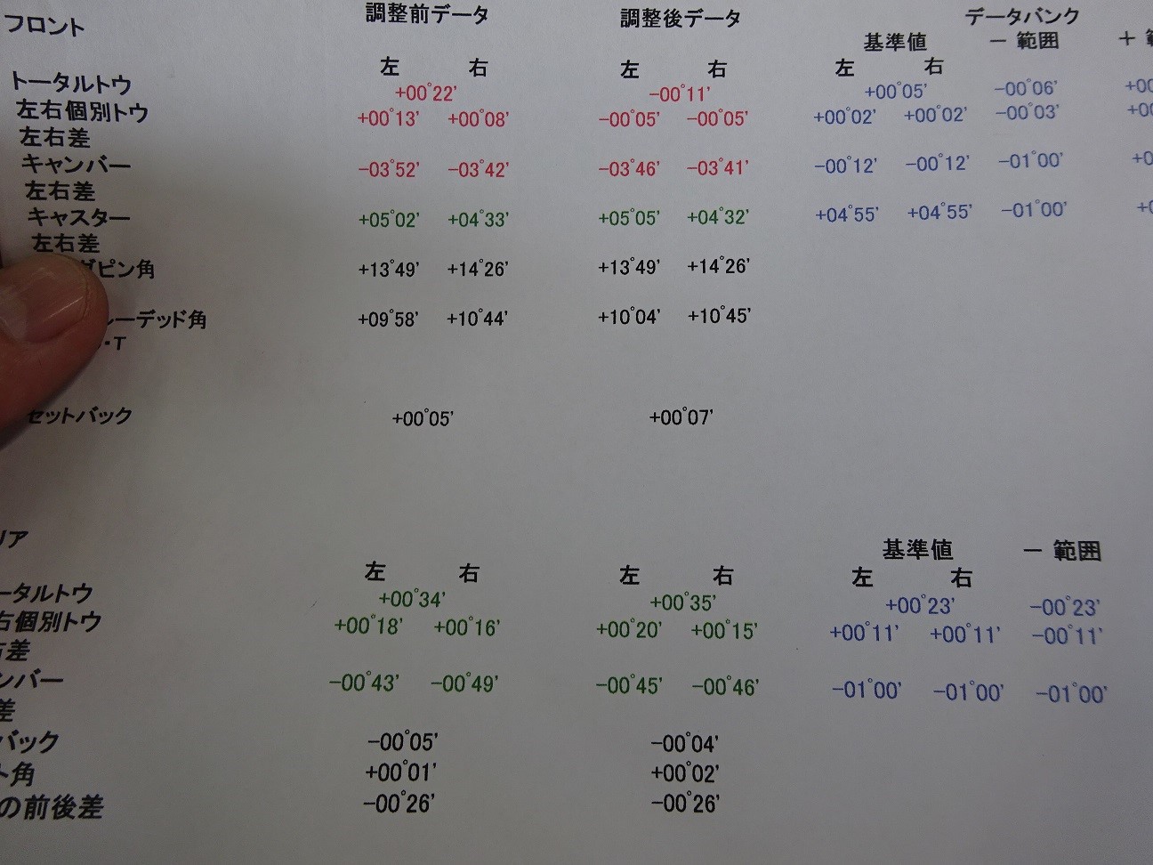 これで、フロントを-5°付けると、2秒縮まる予定です。(あまくないわ)