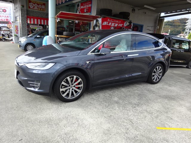 テスラ モデルXスゲー重たいです。うちのリフトが、悲鳴を上げかけてました。