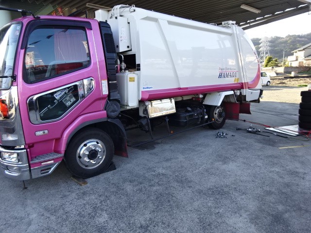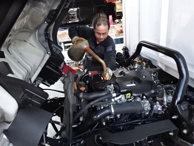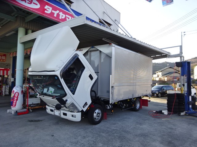 引き続きトラックのオイル交換ですが?屋根にあたりそう。