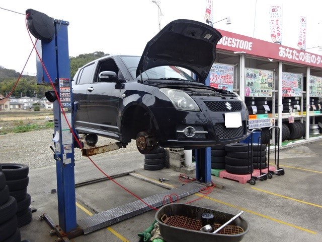 スイフトスポーツZC31Sの車検整備です。何もしなくてもいい、と言われたのですが、タイヤ買ってくれるのが、一番うれしいです。