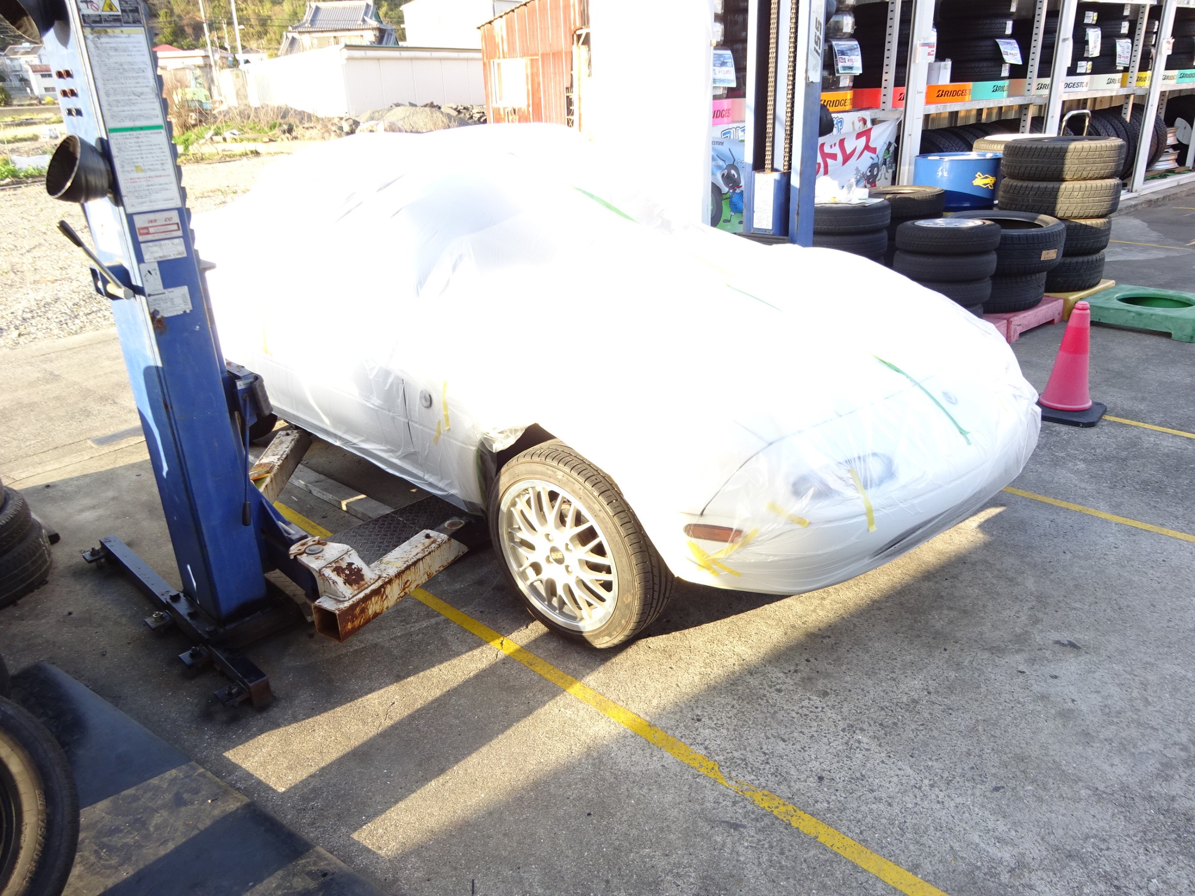 珍しいアルファロメオ ローテーション&バランス調整作業ですが。