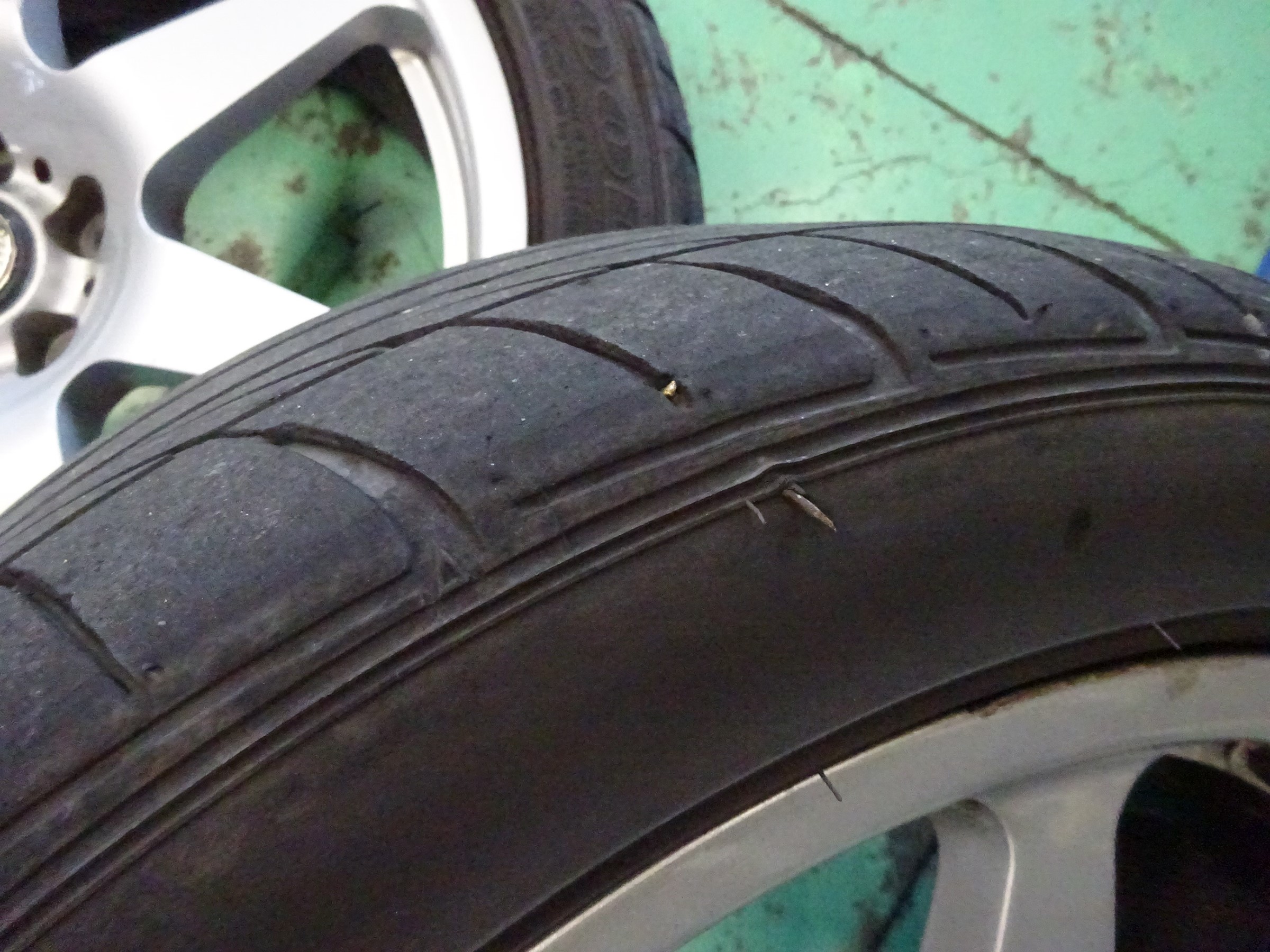 釘ささり発見 皮を貫通 エア漏れなしでした。良かった。