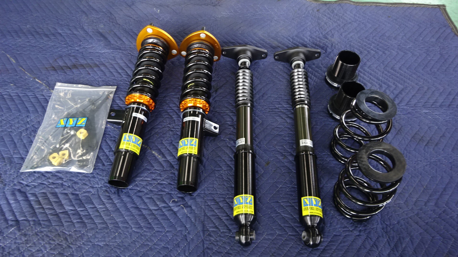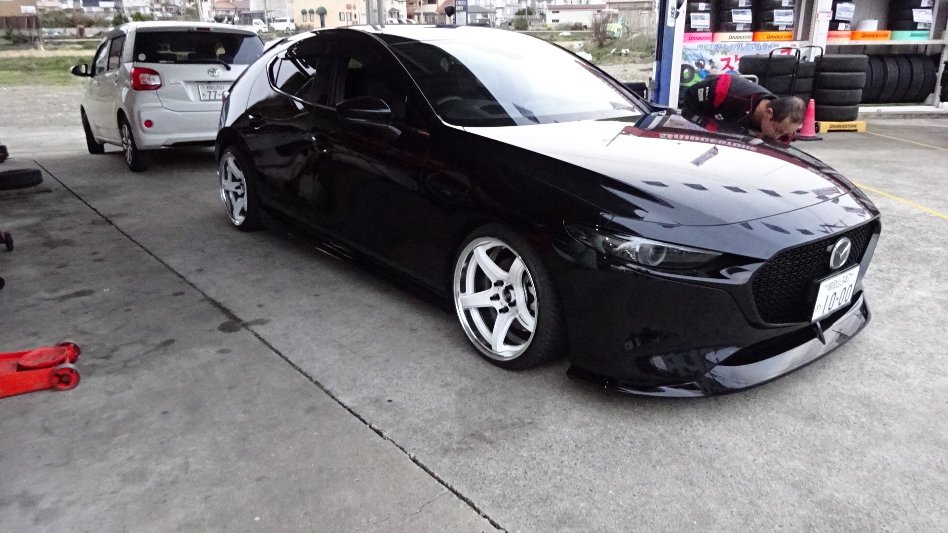 マツダ3カッコイイですね。持ち込みの車高調XYZの取り付けです。