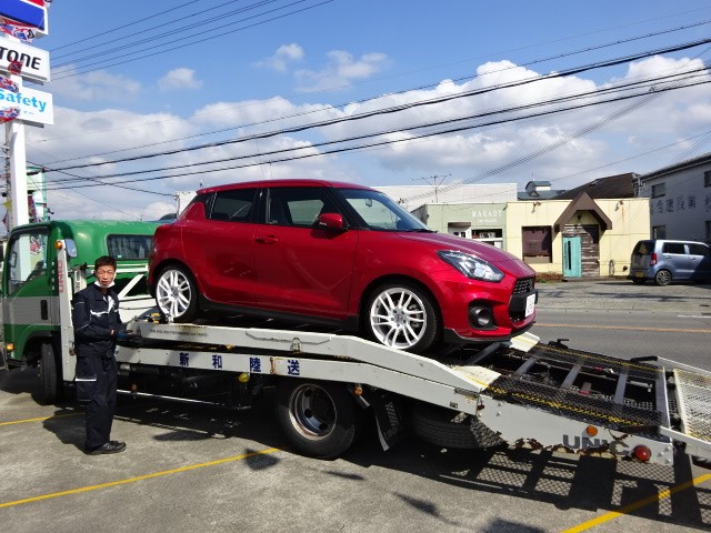 本日は、定休日なのですが、SWKスズキアリーナ久留米西から海を渡って陸送されてきました。