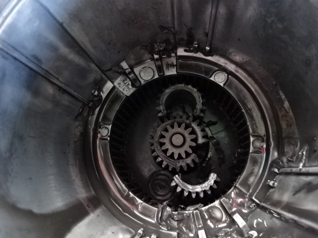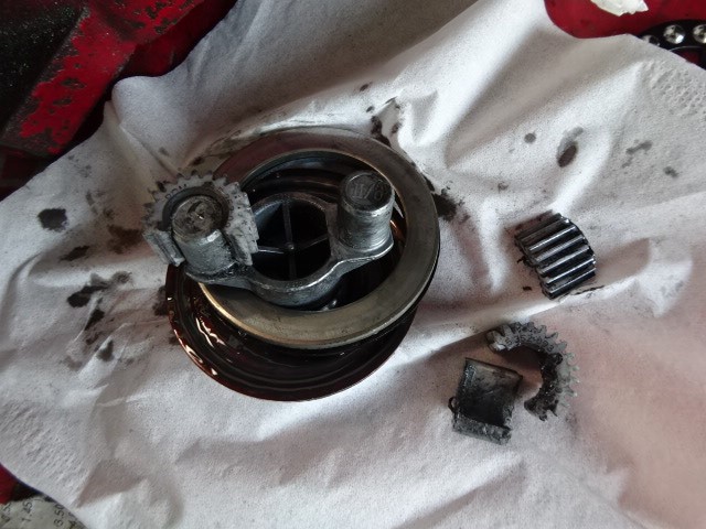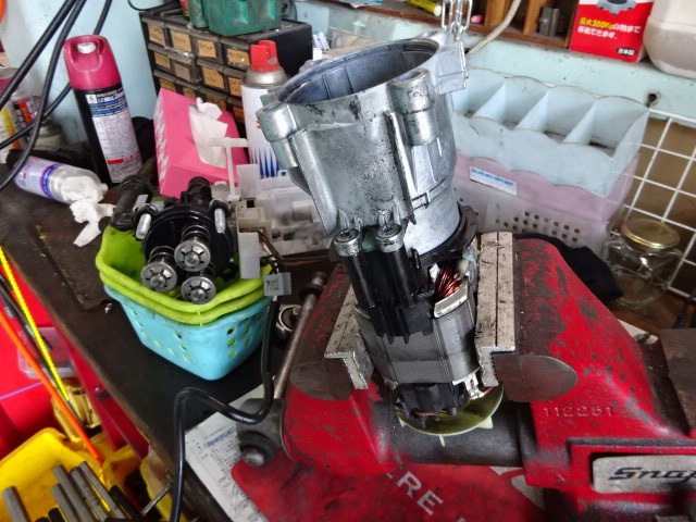 バラしてみると、プラ製のギヤが、砕けて巻き付いていましたよ。