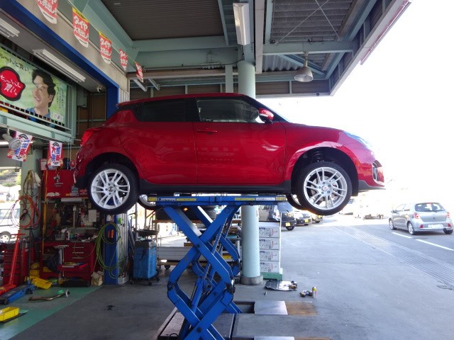 先日 陸送されて来たSWKのスイフトスポーツ 納車前の部品取り付け作業です。