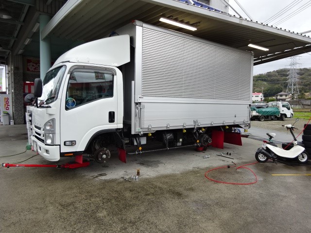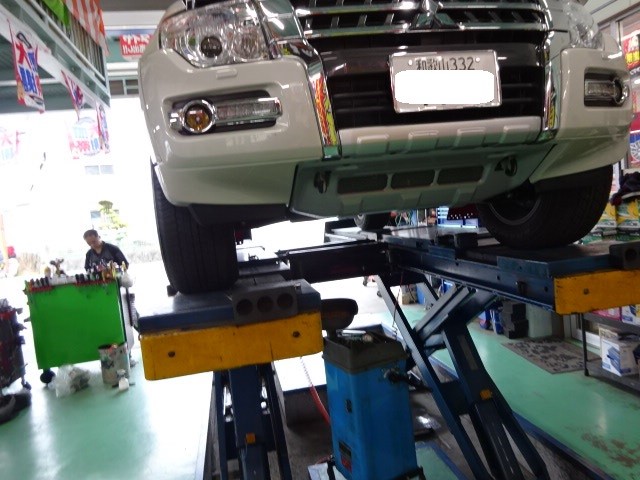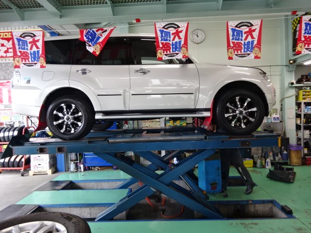 最終型パジェロ夏用タイヤに交換です。ついでにオイル交換もありがとうございます。