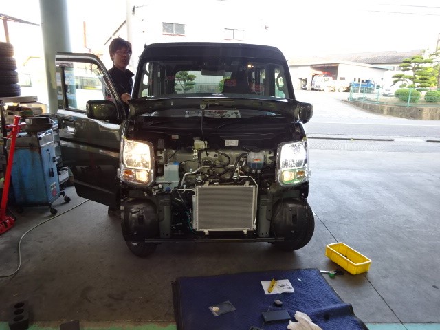 新人君専用緑のエブバンに勉強の為 ヘッドライトをLEDに