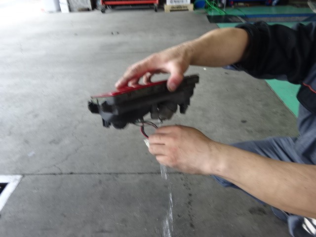 右のテールレンズに水たまりが?