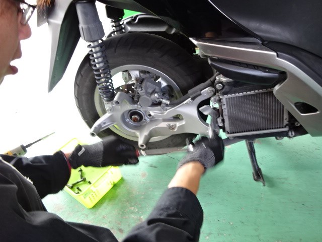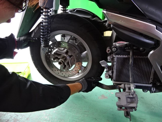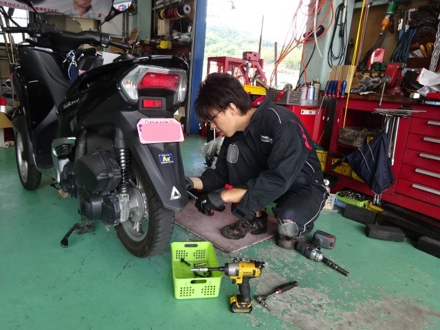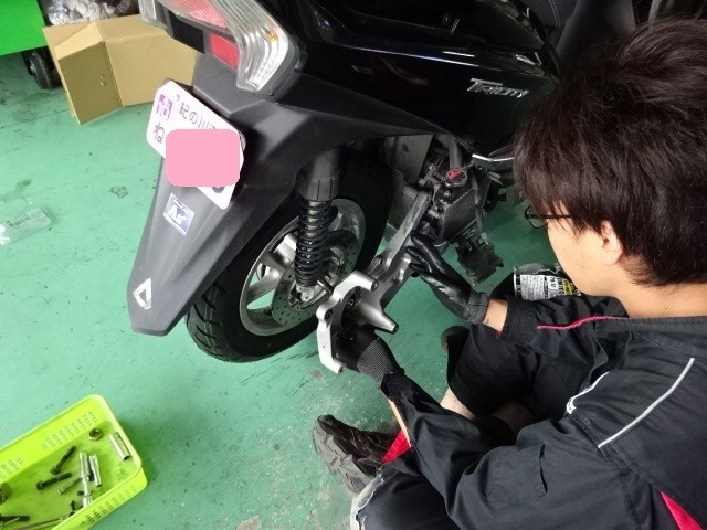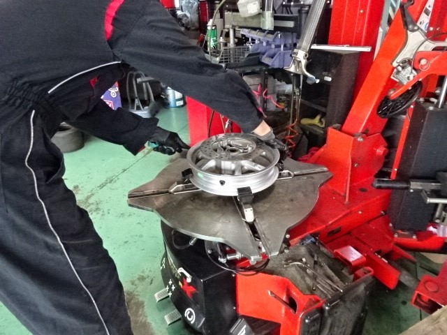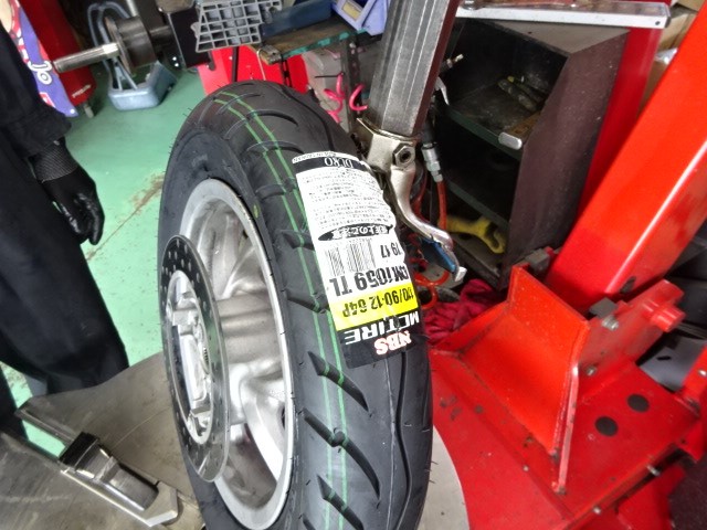 新人君スクーターのタイヤ交換です。