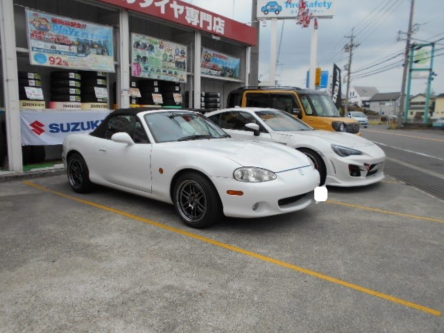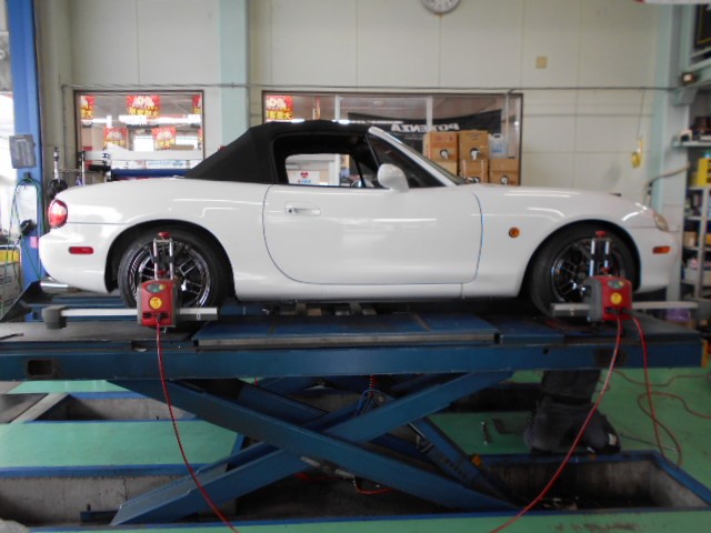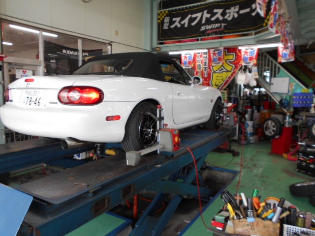 先日、テイン車高調を組ませて頂いたNB6Cロードスター慣らしが終わったので、車高を整えて