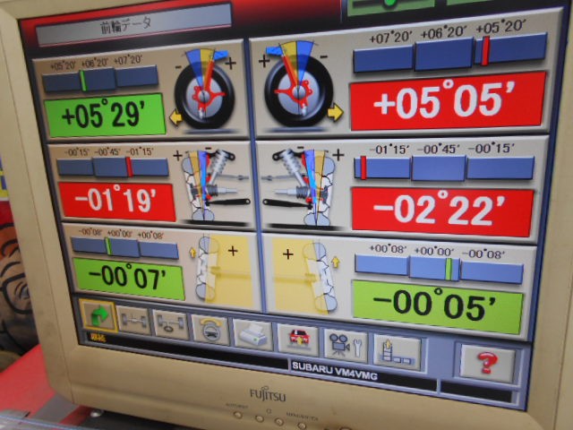 一番目は,業者様からの依頼で、事故で左前サスペンション交換後のアライメント調整になります。