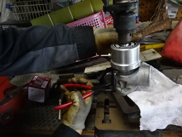 前回取り付けたトラストのレーシングブローオフバルブに強化スプリングに交換して欲しいの事で、