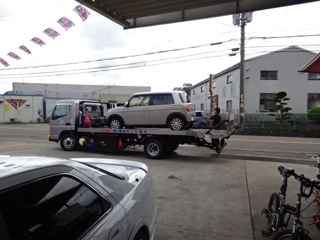 ラパンのお客様、ロードサービスにて運ばれてきました。