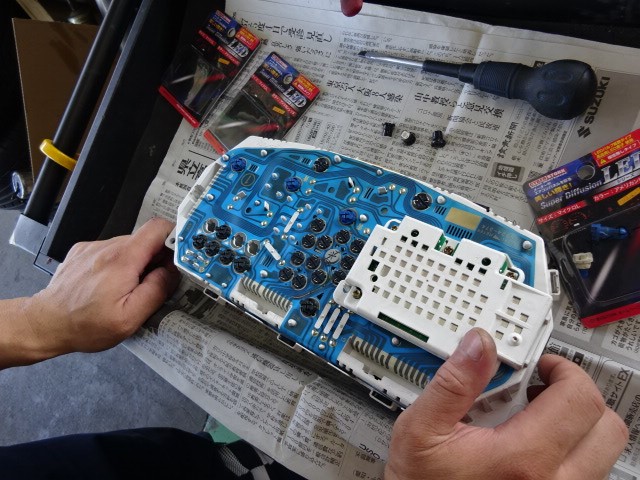 メーター内の球をすべてLEDにしてあるので、誤作動していましたので、点検・交換します。