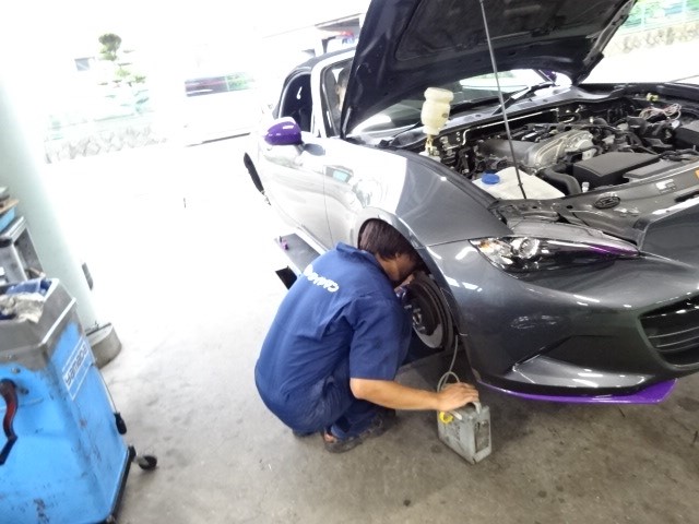 NDロードスターのギヤオイルとブレーキフルード交換です。
