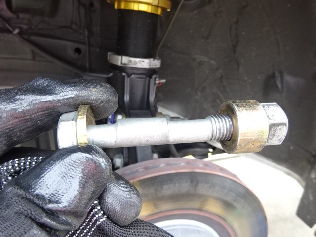 ついでにキャンバー角付けます。タイヤの摩耗が、表の方が若干進んでいく傾向が有るので。